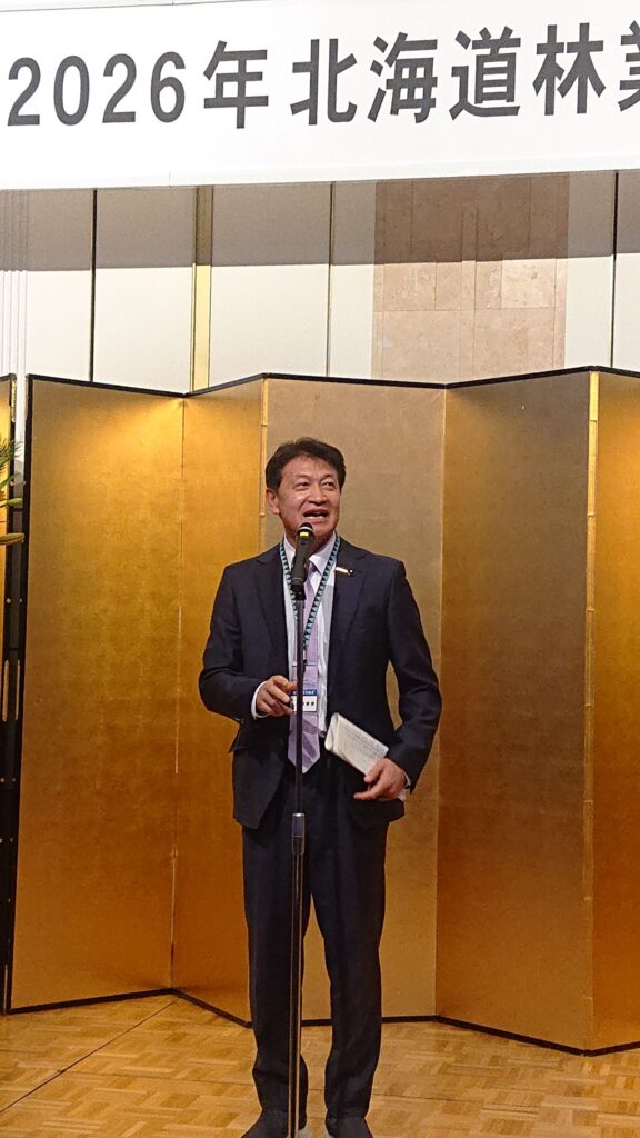 1月14日(水)「北海道林業人新年交礼会」に出席しました。道内各地から林業関係者が一堂に会し、新年の門出を祝いながら、持続可能な林業振興に向けて意見交換を行いました。